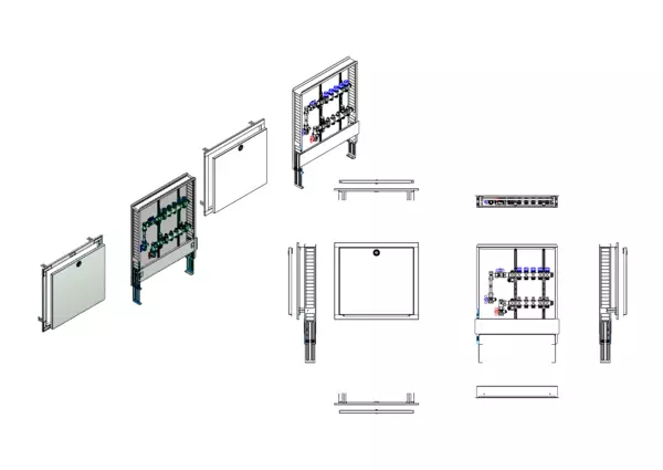 strawa FB-Anschlussstation H 53-WMZ-80 5 Hkr.,BxHxT: 600x725x92 mm, vert. AG m. WMZ, Verteiler mit Regulierventil + THV M30x1,5, Standard-UP-Schrank mit Frontblende in RAL 9016