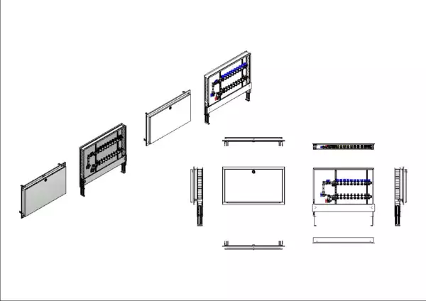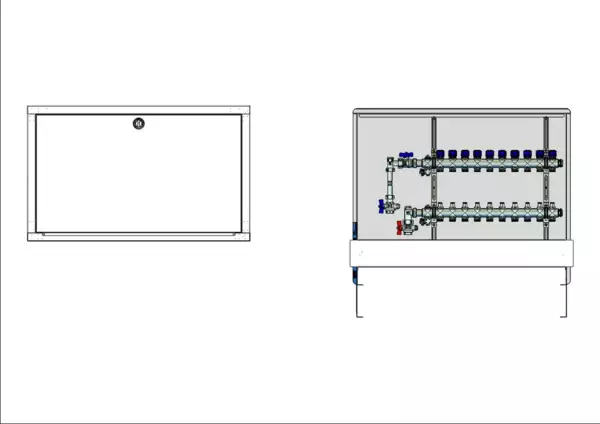 strawa FB-Anschlussstation H 53-WMZ-80 10 Hkr.,BxHxT: 900x725x92 mm, vert. AG m. WMZ, Verteiler mit Regulierventil + THV M30x1,5, Standard-UP-Schrank mit Frontblende in RAL 9016