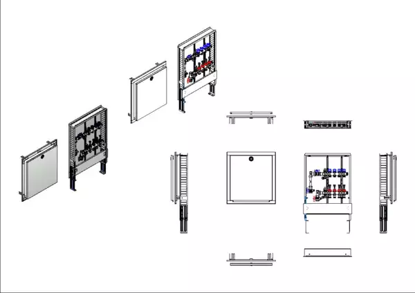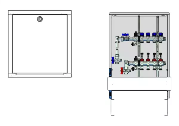 strawa FB-Anschlussstation H 63-WMZ-80 4 Hkr.,BxHxT: 515x725x92 mm, vert. AG. m. WMZ, Verteiler mit DFA 0-3 l/min + THV M30x1,5, Standard-UP-Schrank mit Frontblende in RAL 9016
