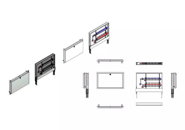 strawa FB-Anschlussstation H 63-WMZ-80 10 Hkr.,BxHxT: 900x725x92 mm, vert. AG. m. WMZ, Verteiler mit DFA 0-3 l/min + THV M30x1,5, Standard-UP-Schrank mit Frontblende in RAL 9016