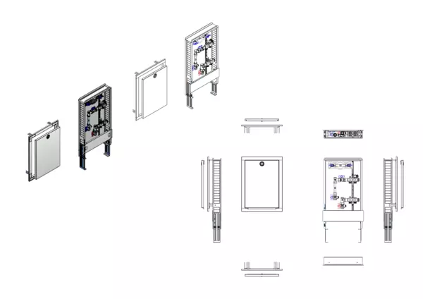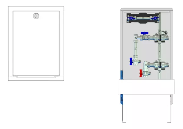 strawa HK-Anschlussstation H 52-W1-WMZ-80 2 Hkr.,BxHxT: 410x725x92 mm, vert. AG m. WMZ, Verteiler ohne Einbauten, Wasserzählerstr. TW kalt, Standard-UP-Schrank mit Frontblende in RAL 9016