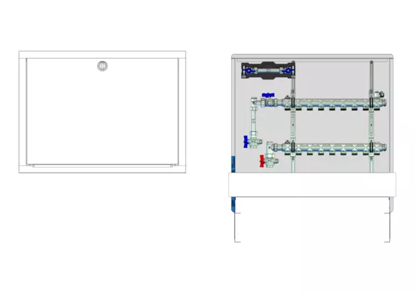 strawa HK-Anschlussstation H 52-W1-WMZ-80 9 Hkr.,BxHxT: 750x725x92 mm, vert. AG m. WMZ, Verteiler ohne Einbauten, Wasserzählerstr. TW kalt, Standard-UP-Schrank mit Frontblende in RAL 9016