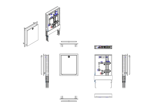 strawa FB-Anschlussstation H 53-W1-WMZ-80 2 Hkr.,BxHxT: 460x725x92 mm, vert. AG m. WMZ, Verteiler mit Regulierventil + THV M30x1,5, Wasserzählerstr. TW kalt, Standard-UP-Schrank mit Frontblende in RAL 9016