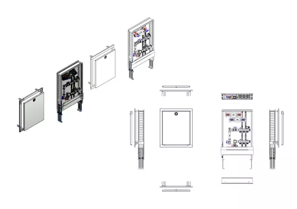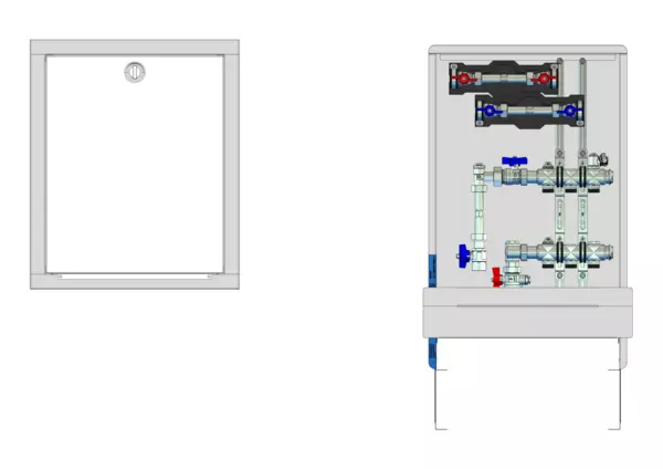 strawa HK-Anschlussstation H 52-W2-WMZ-80 3 Hkr.,BxHxT: 460x725x92 mm, vert. AG m. WMZ, Verteiler ohne Einbauten, Wasserzählerstr. TW kalt und warm, Standard-UP-Schrank mit Frontblende in RAL 9016