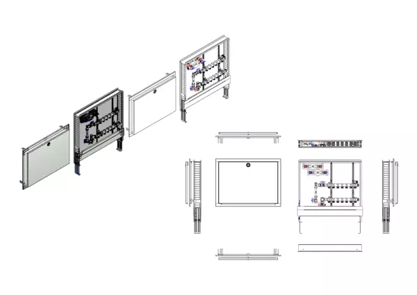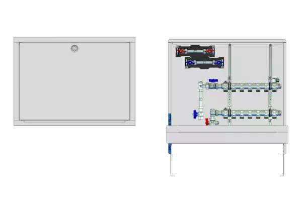 strawa HK-Anschlussstation H 52-W2-WMZ-80 7 Hkr.,BxHxT: 750x725x92 mm, vert. AG m. WMZ, Verteiler ohne Einbauten, Wasserzählerstr. TW kalt und warm, Standard-UP-Schrank mit Frontblende in RAL 9016