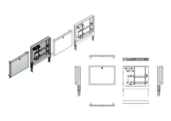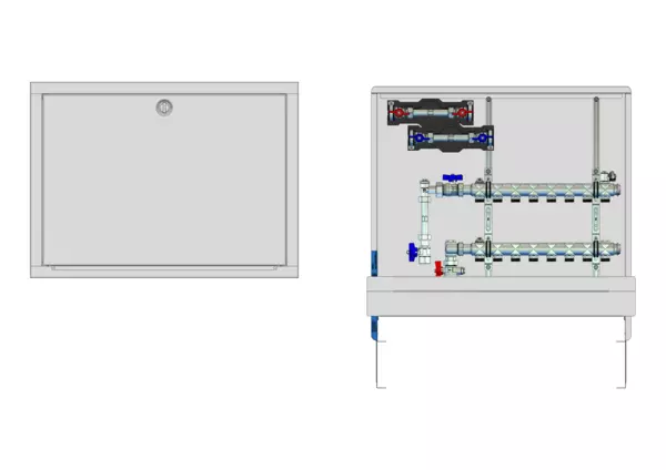 strawa HK-Anschlussstation H 52-W2-WMZ-80 8 Hkr.,BxHxT: 900x725x92 mm, vert. AG m. WMZ, Verteiler ohne Einbauten, Wasserzählerstr. TW kalt und warm, Standard-UP-Schrank mit Frontblende in RAL 9016