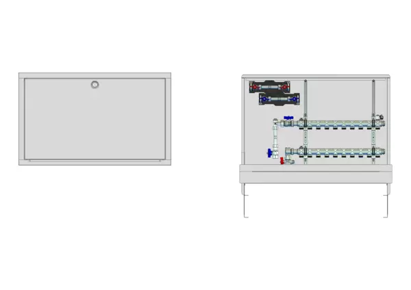 strawa HK-Anschlussstation H 52-W2-WMZ-80 10 Hkr.,BxHxT: 900x725x92 mm, vert. AG m. WMZ, Verteiler ohne Einbauten, Wasserzählerstr. TW kalt und warm, Standard-UP-Schrank mit Frontblende in RAL 9016