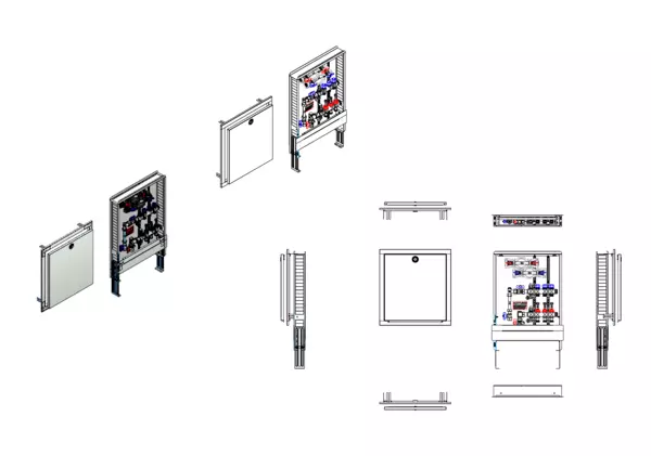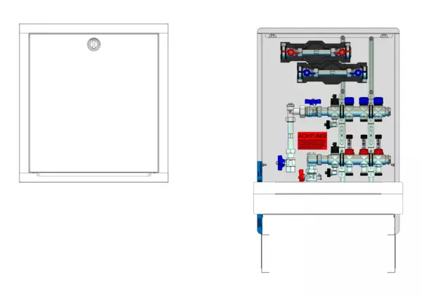 strawa FB-Anschlussstation H 63-W2-WMZ-80 3 Hkr.,BxHxT: 515x725x92 mm, vert. AG. m. WMZ, Verteiler mit DFA 0-3 l/min + THV M30x1,5, Wasserzählerstr. TW kalt und warm, Standard-UP-Schrank mit Frontblende in RAL 9016