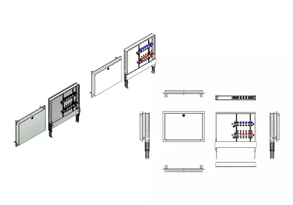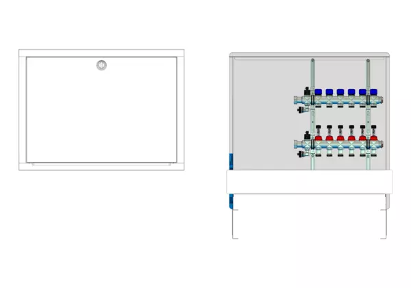 strawa FB-Anschlussstation HX 63 6 Hkr.,BxHxT: 750x725x92 mm, ohne Anschlussgarnitur, Verteiler mit DFA 0-3 l/min + THV M30x1,5, Standard-UP-Schrank mit Frontblende in RAL 9016