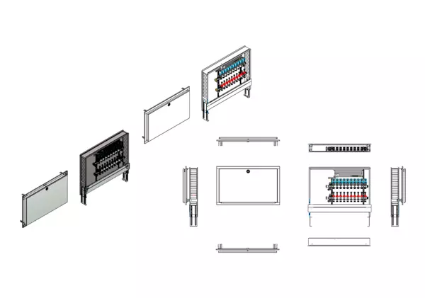 strawa FB-Anschlussstation HX 18-EGO 10 Hkr.,BxHxT: 1050x725x122 mm, ohne Anschlussgarnitur, Verteiler mit DFA min/max + THV, mit vorm. EGO-Regelantrieben u. Klemmleiste mit Vorverdraht., Standard-UP-Schrank mit Frontbl. in RAL 9016
