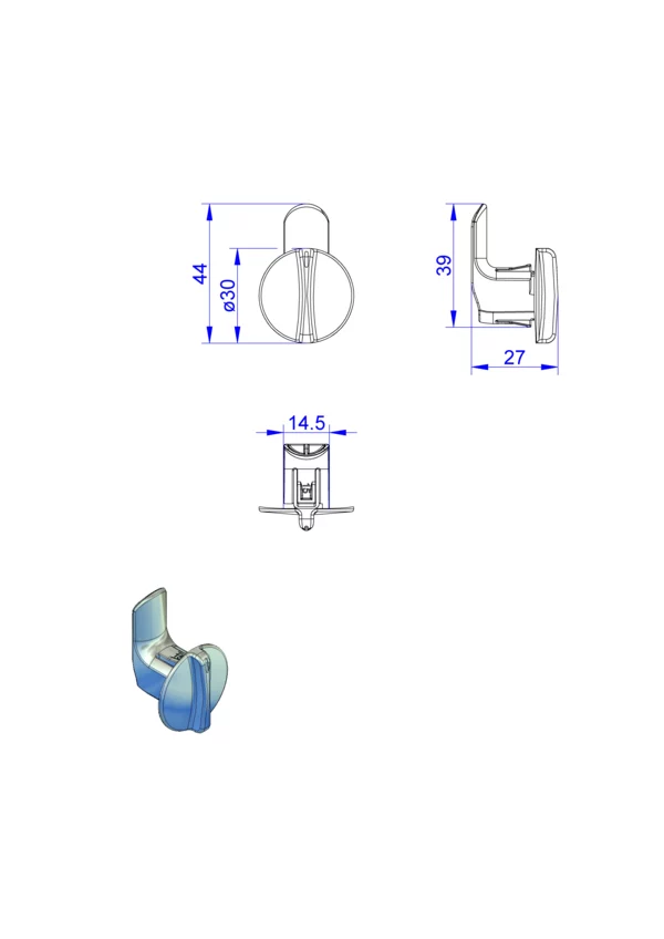 Abmessung (Breite x Höhe x Tiefe): 30 x 44 x 27 mm
