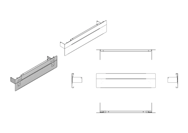 Der obere Teil des Estrichplallblechs lässt sich im eingebauten Zustand zur Revision und Wartung der Station abnehmen. Über die Einstecklaschen lässt sich das Estrichprallblech am Schrank ca. 40 mm ausziehen.