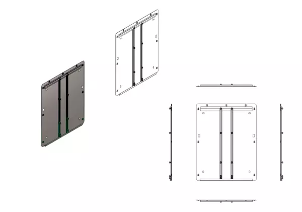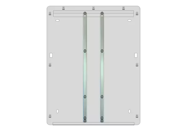 Die verzinkte Rückwand für AP-Gehäuseabdeckung ermöglicht eine einfache Montage von e-class Verteilern und Zubehör an Wänden. Die Rückwand kann mit Verteiler und Zubehör in der Bauphase montiert werden. Erst zur Fertigstellung des Gebäudes wird die AP-Gehäusabdeckung auf der Rückwand montiert.