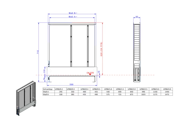 strawa Einbauzarge 80/3,0 verzinkt,BxHxT: 1175 x 710 x 80 mm, höhenverstellbar von 710-840 mm