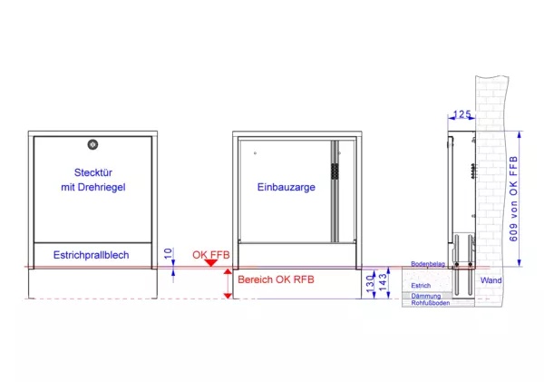 Variabler und montagefreundlicher Aufputzschrank für die fachgerechte und schnelle Montage von Flächenheizungs-, Flächenkühlungs- und Sanitärsystemverteilern und deren Zubehör an Trockenbau- oder Massivwände.