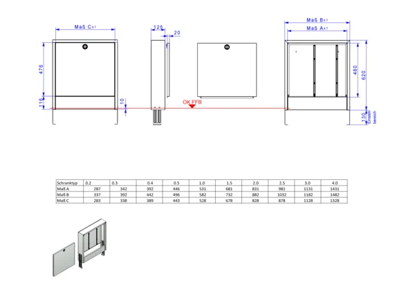 Schrank höhenverstellbar von 620-750 mm