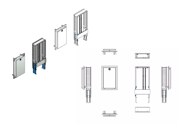 Variabler und montagefreundlicher Unterputzschrank für die fachgerechte und schnelle Montage von Flächenheizungs-, Flächenkühlungs- und Sanitärsystemverteilern und deren Zubehör in Trockenbau- oder Massivwänden. - Bestandteile: