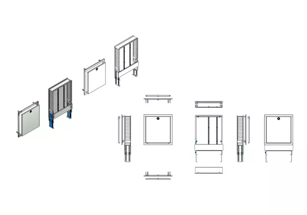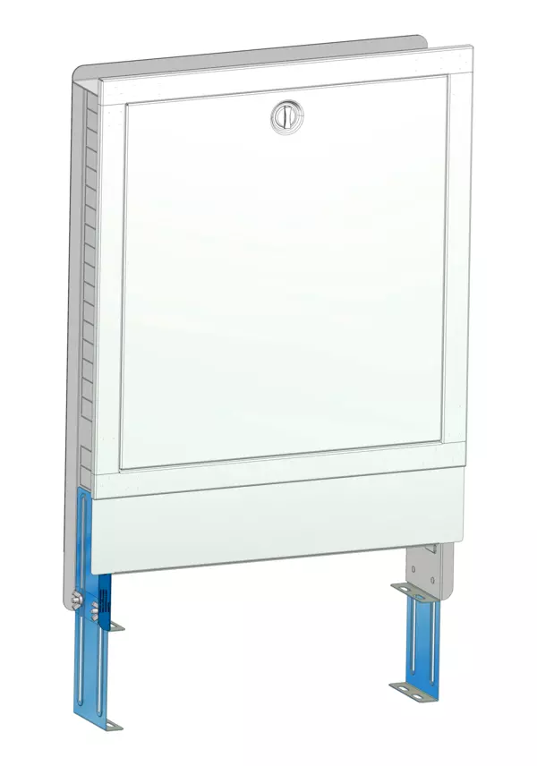 Variabler und montagefreundlicher Unterputzschrank für die fachgerechte und schnelle Montage von Flächenheizungs-, Flächenkühlungs- und Sanitärsystemverteilern und deren Zubehör in Trockenbau- oder Massivwänden. - Bestandteile: