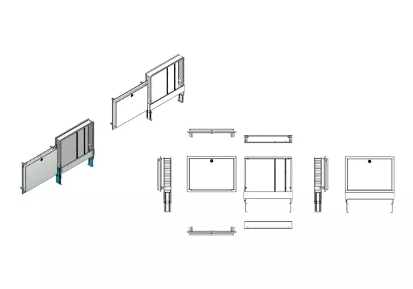Variabler und montagefreundlicher Unterputzschrank für die fachgerechte und schnelle Montage von Flächenheizungs-, Flächenkühlungs- und Sanitärsystemverteilern und deren Zubehör in Trockenbau- oder Massivwänden.