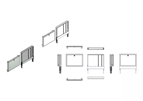 Variabler und montagefreundlicher Unterputz-Schrank für die fachgerechte und schnelle Montage von Flächenheizungs-, Flächenkühlungs- und Sanitärsystemverteilern und deren Zubehör in Trockenbau- oder Massivwänden. - Bestandteile: