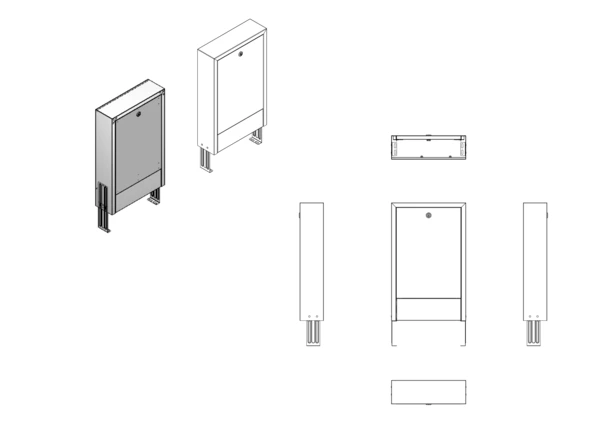 Variabler und montagefreundlicher Aufputzschrank für die fachgerechte und schnelle Montage von Flächenheizungs-, Flächenkühlungs- und Sanitärsystemverteilern und deren Zubehör. Der Schrank enthält eine Kunststofftür die besonders für Funkanwendungen geeignet ist.