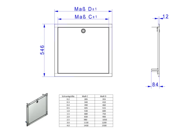 Artikelabmessung: B x H x T: 1200 x 546 x 84 mm