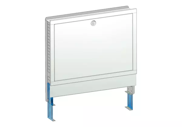Variabler und montagefreundlicher Unterputzschrank für die fachgerechte und schnelle Montage von Flächenheizungs-, Flächenkühlungs- und Sanitärsystemverteilern und deren Zubehör, inklusive Spritzschutz für die Bauphase.