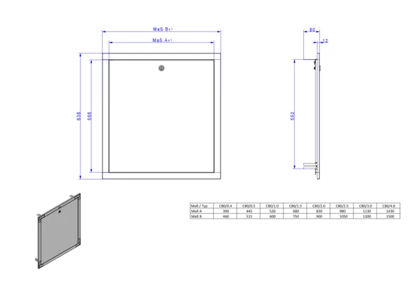 Rahmen aus Stahlblech und Kunststofftür, 40 mm tiefenverstellbar, mit Zylinderschloss und zwei Schlüsseln