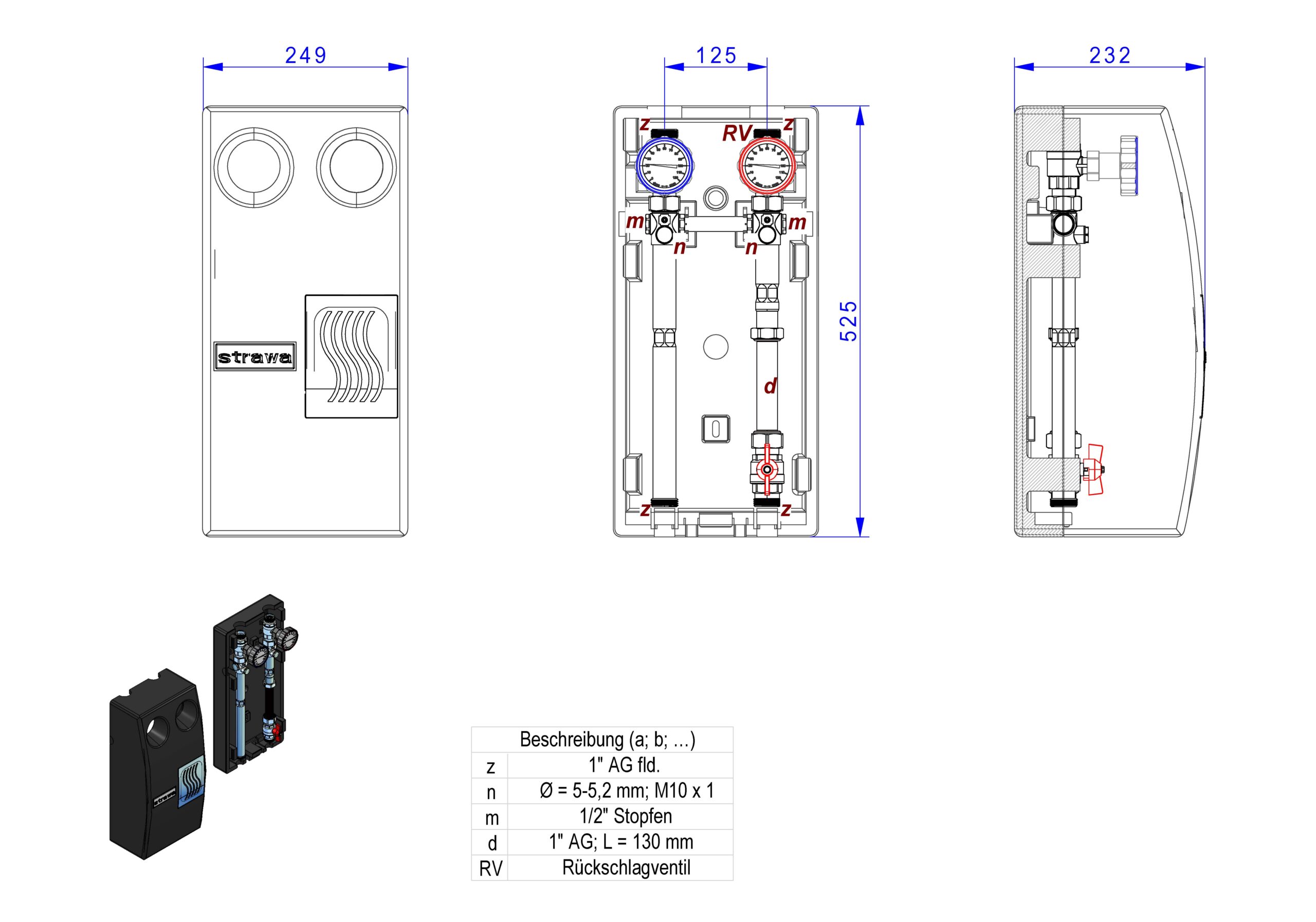strawa strawi 125-25 Aufbaugruppe HK0-130 BxHxT: 250 x 525 x 232 mm f. ungeregel. Hkr. ohne Pumpe, Pumpendistanzstück 1" Länge 130 mm
