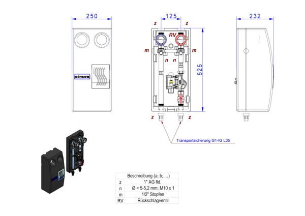 strawa strawi 125-25 Aufbaugruppe HK1,BxHxT: 250 x 525 x 232 mm, f. ungeregel. Hkr. Pumpe UPM3