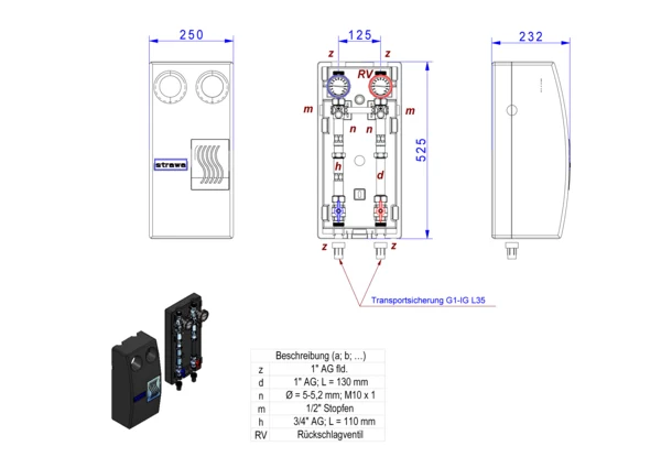 strawa strawi 125-25 Aufbaugruppe HK0-WMZ-130,BxHxT: 250 x 525 x 232 mm, f. ungeregel. Hkr. ohne Pumpe mit Wärmezählerverrohrung, Pumpendistanzstück 1" Länge 130 mm