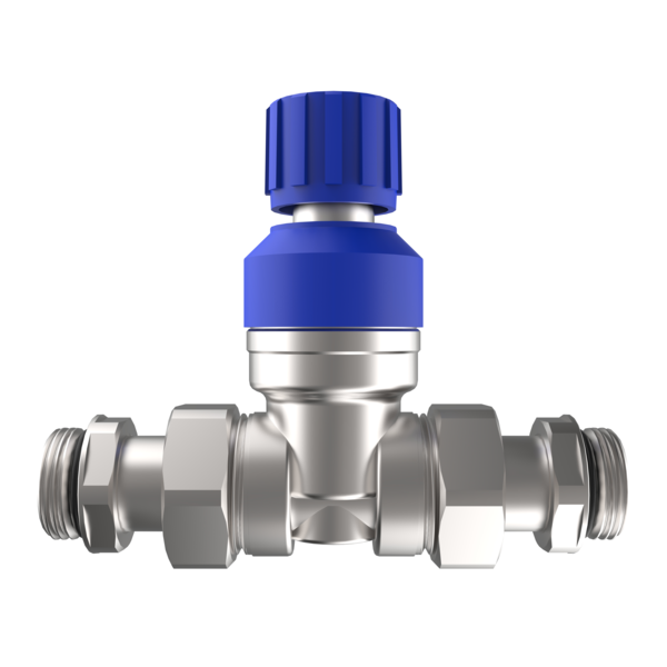 Zusätzlich ist im Vorlauf des Kugelhahn mit Thermomertergriff ein Rückflussvehinderer verbaut. Das 1" Pumpenpassstück 130 mm dient zur