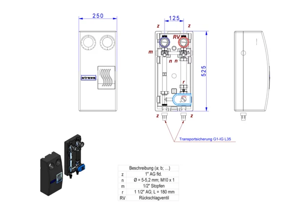 strawa strawi 125-25 Aufbaugruppe MK0-180-SM,BxHxT: 250 x 525 x 232 mm, f. geregel. Hkr. ohne Pumpe, Pumpendistanzstück 1 1/2" Länge 180 mm, m. Stellmotor