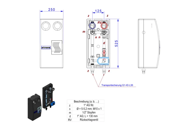 strawa strawi 125-25 Aufbaugruppe MK0-130-SM,BxHxT: 250 x 525 x 232 mm, f. geregel. Hkr. ohne Pumpe, Pumpendistanzstück 1" Länge 130 mm, m. Stellmotor