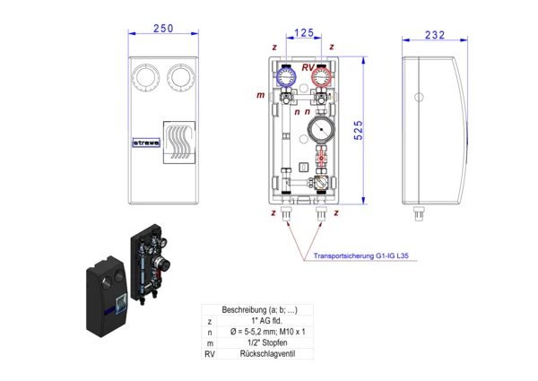 strawa strawi 125-25 Aufbaugruppe MK3,BxHxT: 250 x 525 x 232 mm, f. geregel. Hkr. Pumpe Eco Floor