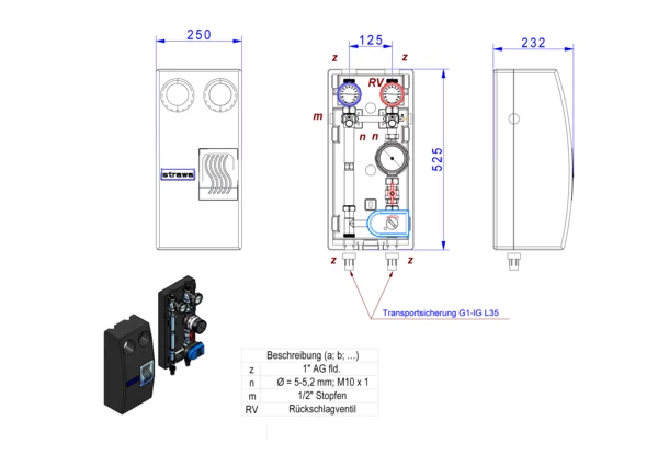 strawa strawi 125-25 Aufbaugruppe MK3-SM,BxHxT: 250 x 525 x 232 mm, f. geregel. Hkr. Pumpe Eco Floor, m. Stellmotor