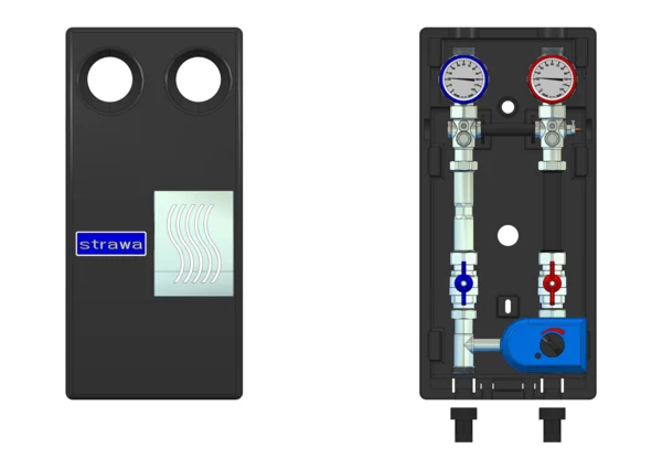 Aufbaugruppe für einen geregelten Heizkreis mit Wärmezählerverrohrung, passend auf strawi 125 Kesselverteiler