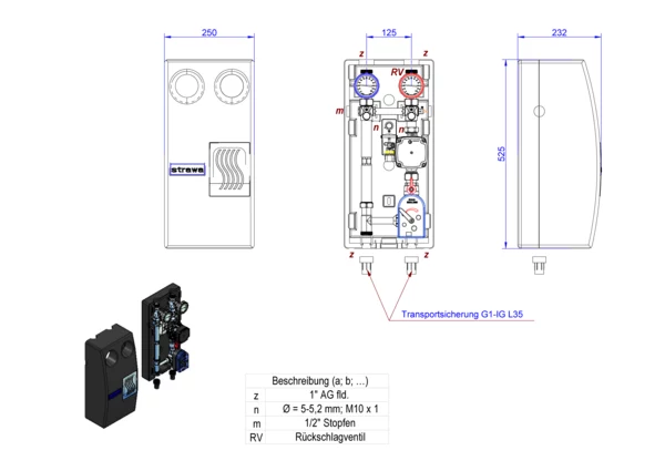 strawa strawi 125-25 Aufbaugruppe FW1-SM,BxHxT: 250 x 525 x 232 mm, f. festwertgeregel. Hkr. Pumpe UPM3 m. Stellmotor