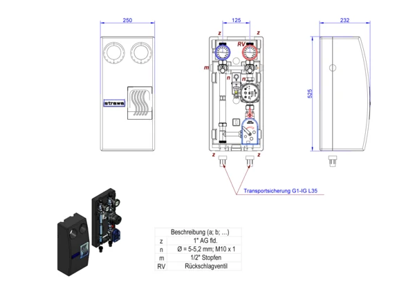 strawa strawi 125-25 Aufbaugruppe FW2-SM,BxHxT: 250 x 525 x 232 mm, f. festwertgeregel. Hkr. Pumpe Alpha2 m. Stellmotor