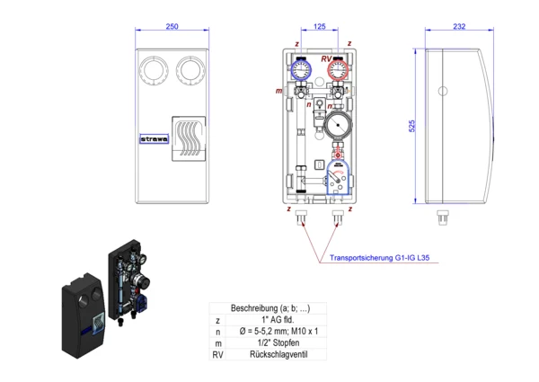 strawa strawi 125-25 Aufbaugruppe FW3-SM,BxHxT: 250 x 525 x 232 mm, f. festwertgeregel. Hkr. Pumpe Eco Floor m. Stellmotor