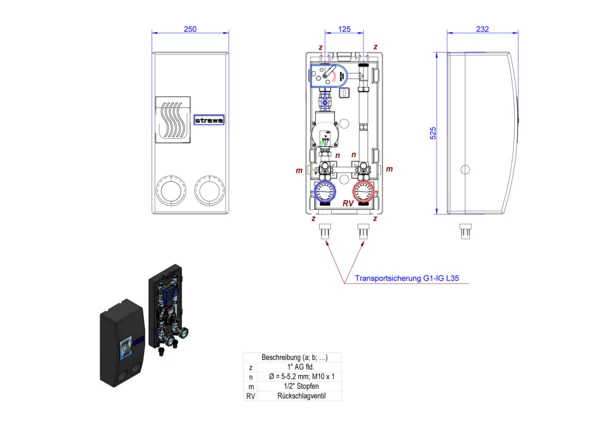 strawi 125-25 Aufbaugruppe FWR4-SM,BxHxT: 250 x 525 x 232 mm, f. Kesselrücklauftemperaturanhebung. Pumpe Wilo Para m. Stellmotor