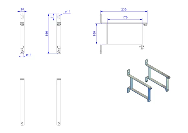 Das Wandhalter-Set, bestehend aus zwei Halterungen, dient zur Befestigung von strawi 125-25 und strawi 125-40 Kesselverteilern an der Wand.