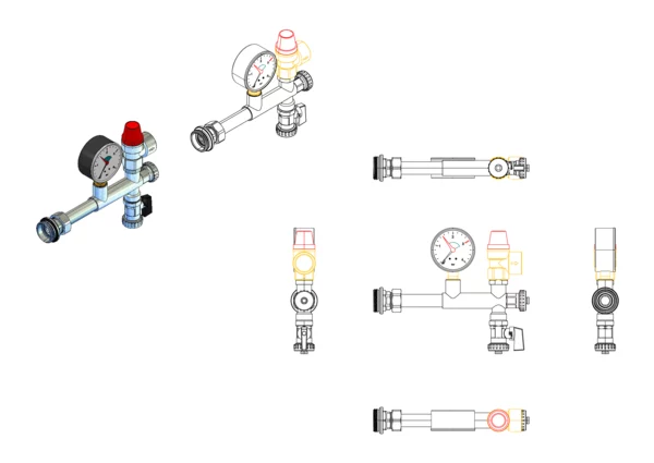 Die Sicherheitsgruppe kann nach Bedarf am strawi 125-25 und 125-40 Kesselverteiler montiert werden.