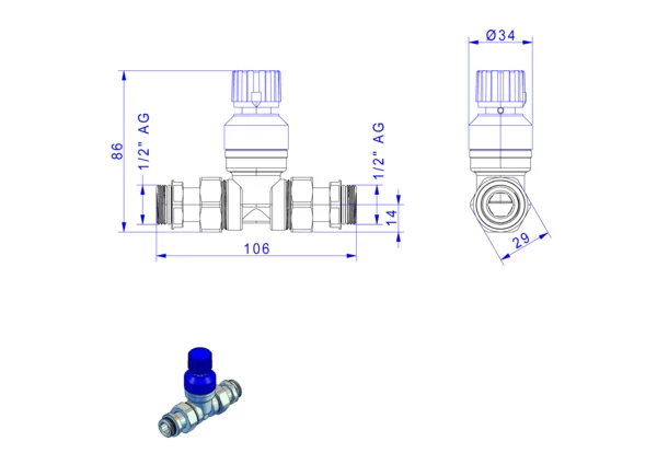 strawa strawi 125Überströmventil DN 15 mit Verschraubungs-Set,BxHxT: 90 x 88 x 34 mm, für Einbau in strawi 125-25 Aufbaugruppen
