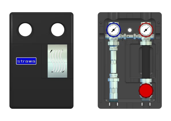 strawa strawiola 160 VA Aufbaugruppe HK32-WMZ BxHxT: 320 x 470 x 215 mm f. ungeregel. Hkr. ohne Pumpe, Pumpendistanzstück 1 1/2" Länge 180 mm, mit Wärmezählerverrohrung, Sekundäranschluss 1 1/4"IG