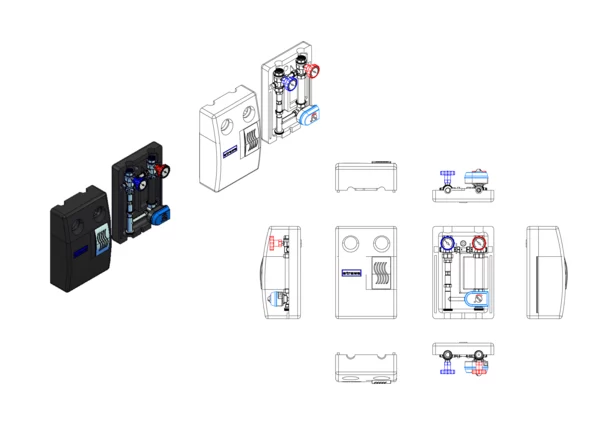Die Aufbaugruppe dient der Verteilung von Wärme bzw. Kälte in einem geregelten Heizkreis, dabei reicht ihr Leistungsspektrum bis 20 kW bzw. der Volumenstrom bis 1,76 m³/h.