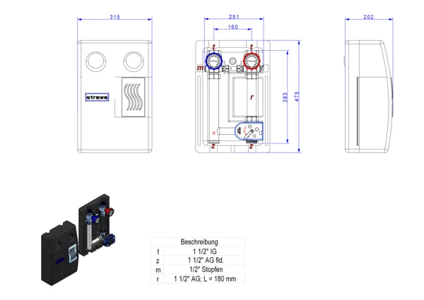 strawa strawiola 160 VA Aufbaugruppe FW40,BxHxT: 320 x 470 x 215 mm, festwertgeregel. Hkr. ohne Pumpe, Pumpendistanzstück 1 1/2" Länge 180 mm, Sekundäranschluss 1 1/2"IG