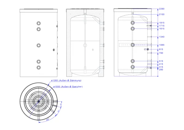 Er überzeugt durch erstklassige Verarbeitung, langlebige Materialien und eine innovative Dämmung, die höchste Energieeffizienz gewährleistet. Dank der innovativen Gehrungsrohr-Technologie bietet er eine Strömungsberuhigung und somit eine optimale Volumennutzung, was ihn zur idealen Wahl für jede Heizungsanlage macht. Eine Schichtlanze sorgt für eine effektive Schichtung des Wassers im Energiepeicher und steigert somit die thermische Effizienz. Zusätzlich ist der Energiespeicher mit einem Fühlerkernrohr ausgestattet, das die variable Positionierung der Fühler im direkten Medium des Energiespeichers ermöglicht und somit eine präzise Temperaturmessung sicherstellt.