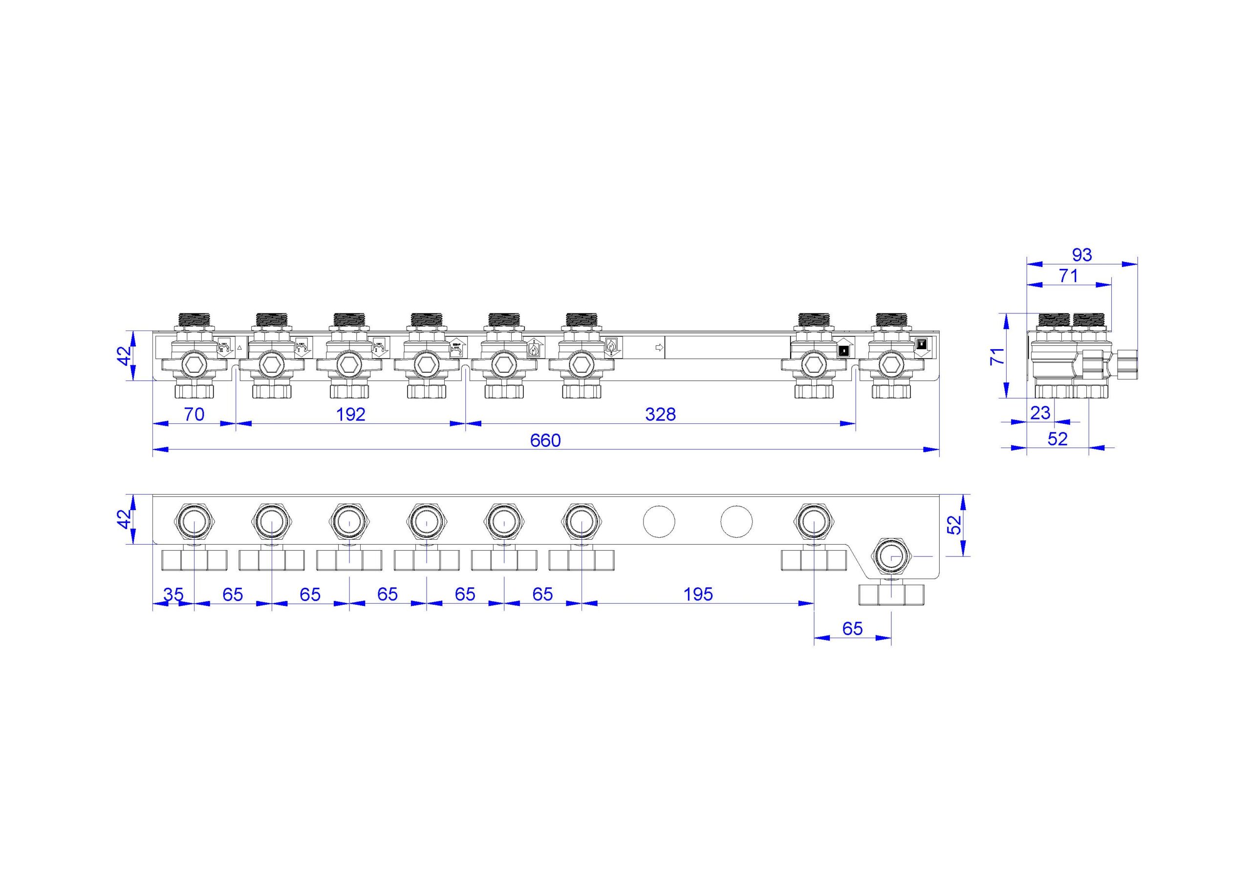 strawa Friwara WM-AS10-1-KH8-ZB-TWK-VKH Anschlussschiene für Hydraulikmodul TWE-FBR mit Zweitbadanschluss Trinkwasser kalt, mit Kugelhahnset für externen Verteiler, 4x Trinkwasser und 4x Heizung BxHxT: 660 x 71 x 93 mm