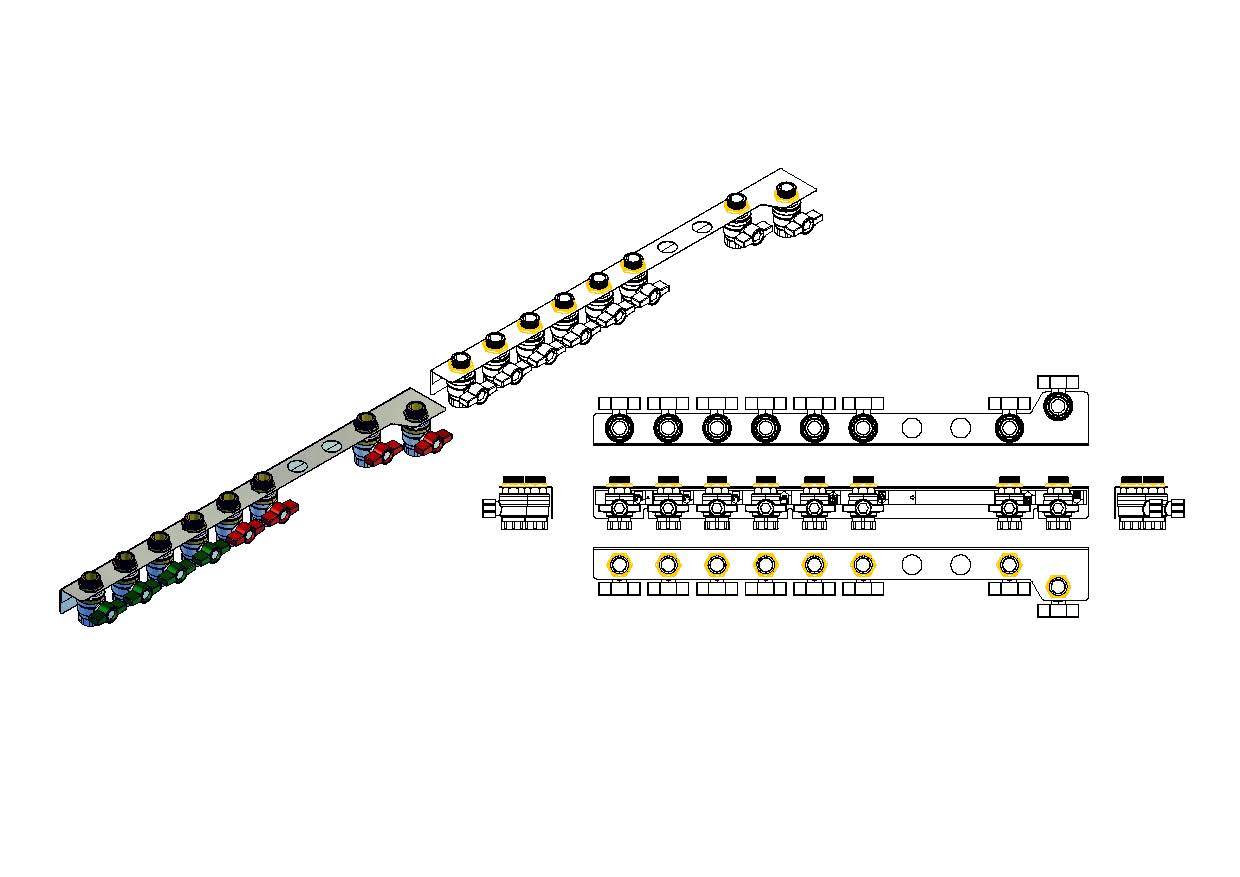 Die Anschlussschienenmodule sind in drei verschiedenen Längen konzipiert und verfügen über 8, 10 oder 12 Aufnahmeöffnungen für die Kugelhähne.